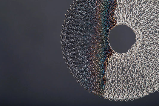 Pamela Mujica is a Chilean wire crochet jewellery artist who uses the Peruvian Stitch technique. She learned this unique method of making loops from its creator, Juan Pacheco, a neo ancestral sculptor from Peru, in 2017. The technique was originally developed for making flexible and uniform sculptures, but now it is widely used in jewellery making in 75 countries.
